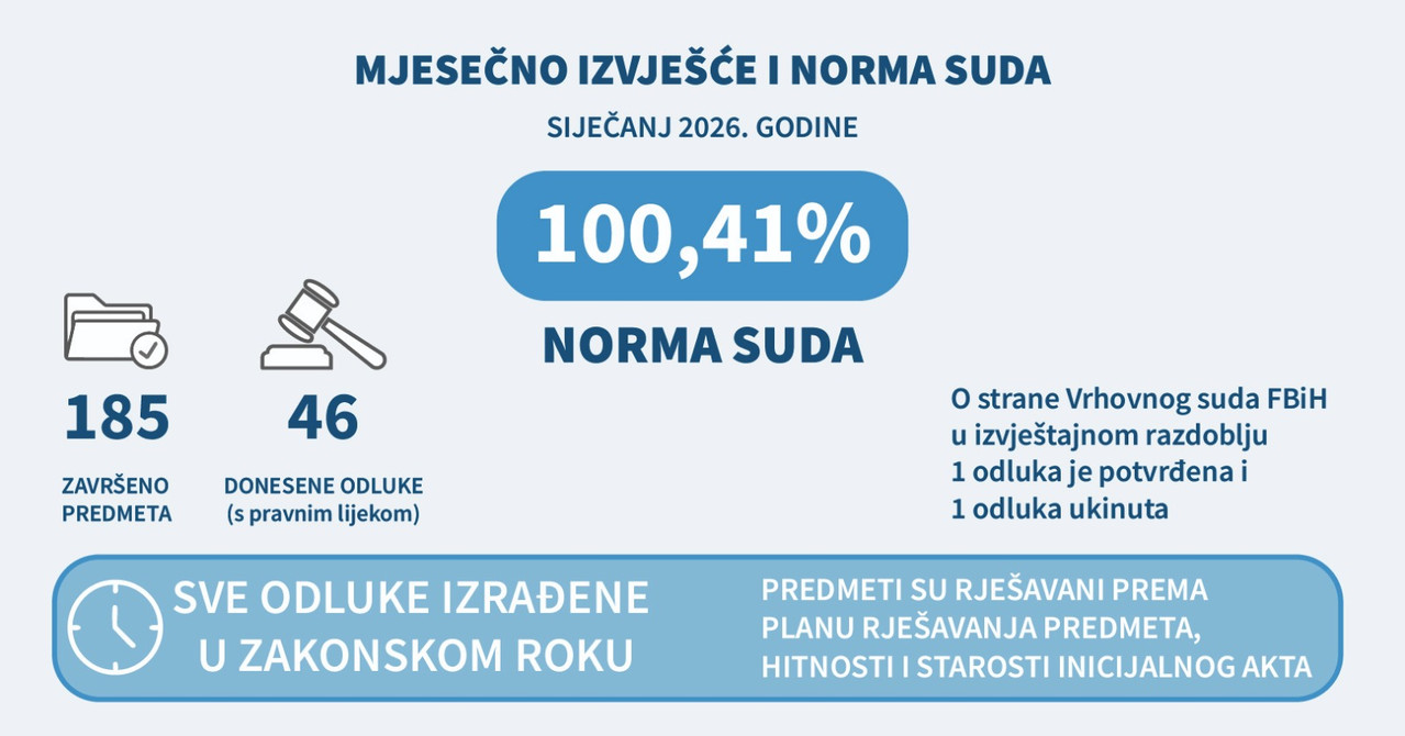 Izvještaj o radu Županijskog suda Široki Brijeg za siječanj 2026. godine
